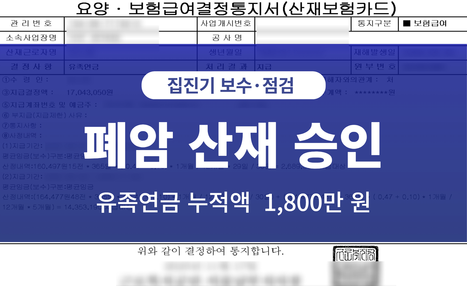 최초 유가족이 주장한 집진기 설비 점검 업무 중에는 폐암발암물질 노출이 확인되지 않아 불승인되었습니다.