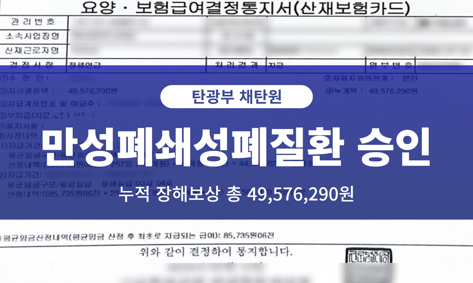 탄광 채탄원에게 발생한 만성폐쇄성폐질환(COPD) 장해보상 승인 사례
